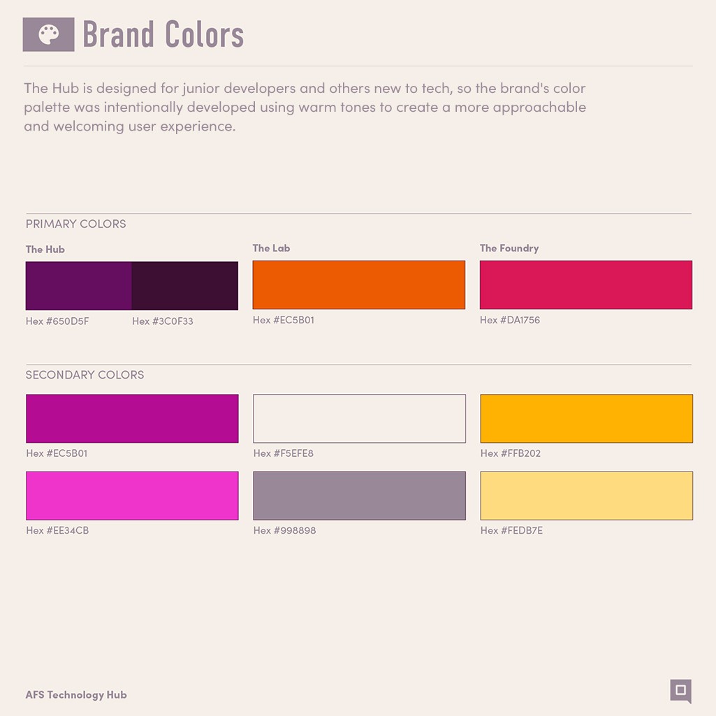 The AFS Technology Hub was tasked with developing digital products that centralize resources for junior developers and users with limited familiarity with federal government technologies. The project involved cross-functional collaboration to identify the necessary assets, beginning with the creation of a brand guideline to establish a clear and consistent foundation for all design efforts. The project was named The Hub.